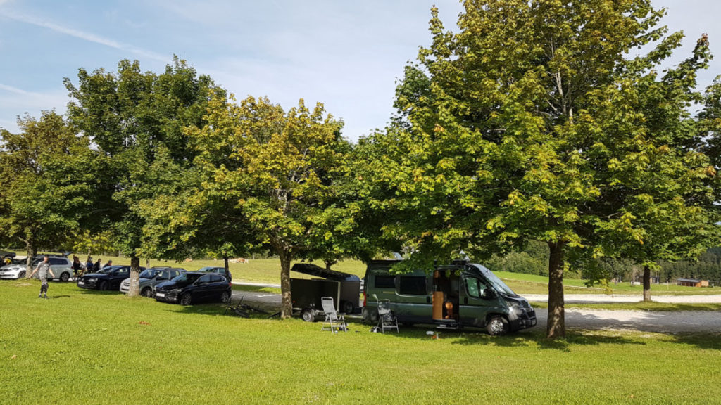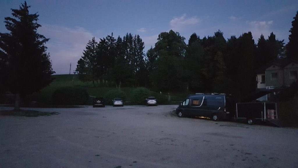 Wir fuhren noch am DO Abend hin, übernachteten oben beim ehemaligen Hotel und stelltn uns in der Früh um, unter den Baum am Parkplatz ,damit Ilvy im Schatten steht.