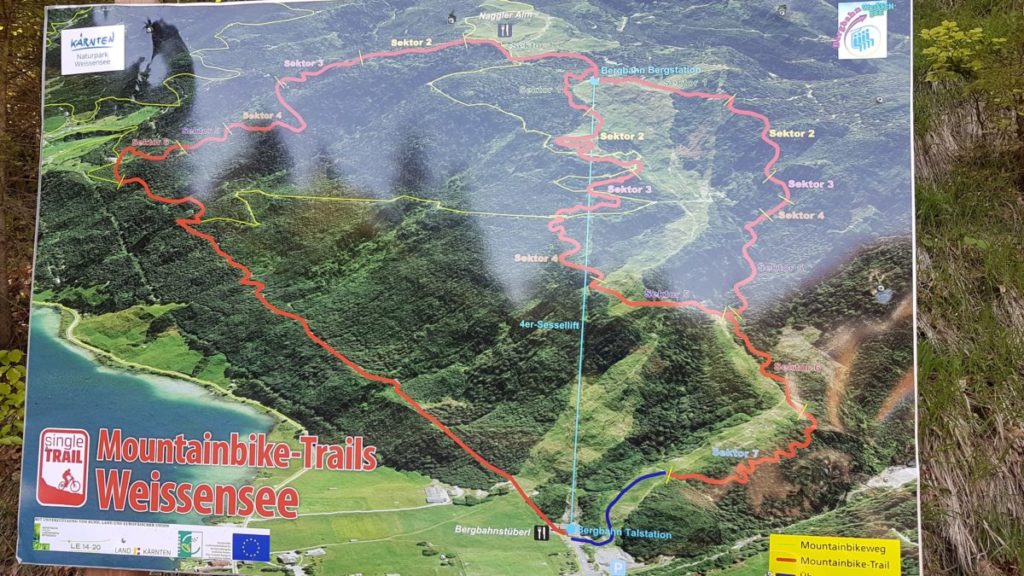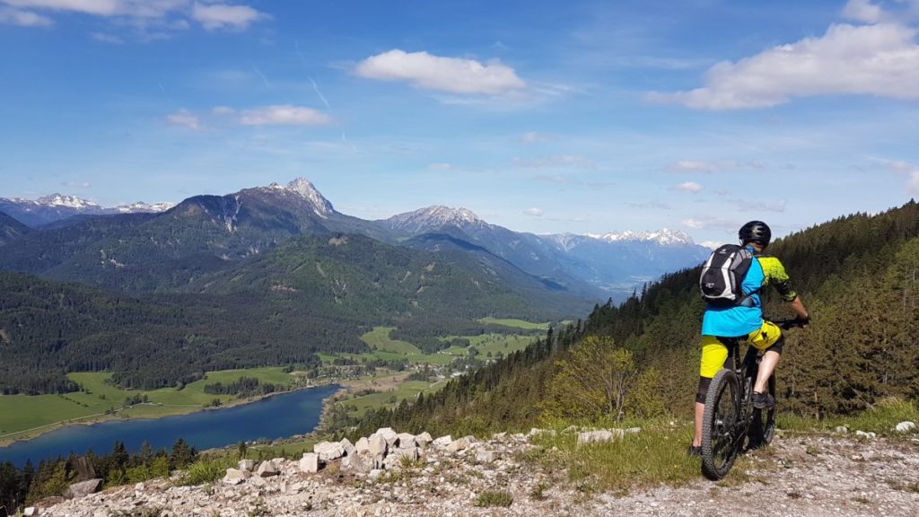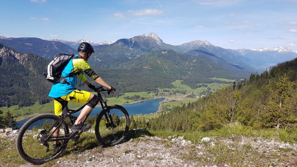 Heute machen Gisi und ich eine MTB-Tour. Wir fahren die „WEISSE Wand – Alm hinterm Brunn“-Tour über 22 km / knapp 700 HM in 2,5 Stunden.
