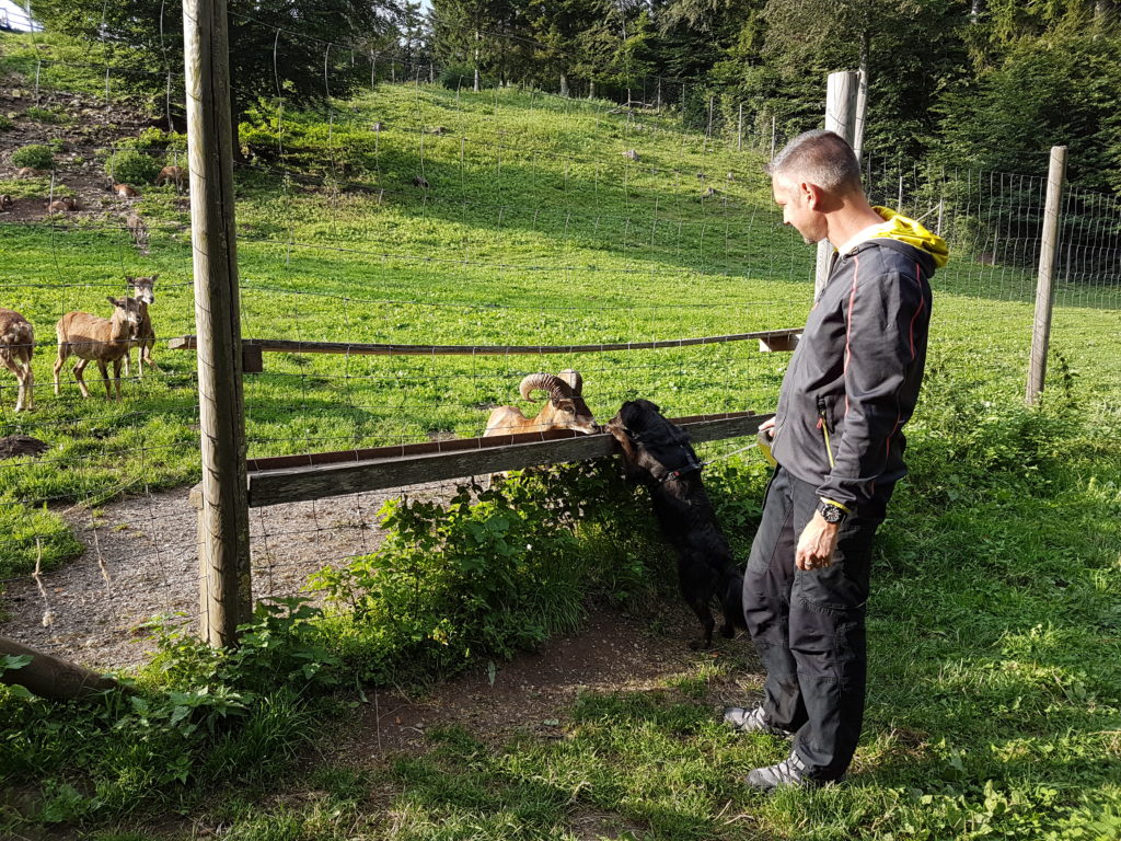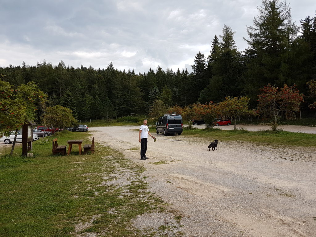 Die Abendrunde mit Ilvy führt uns bei den Wildgehegen und dem Murmeltierbau vorbei. Am Abend gesellen sich noch ein paar weitere Wohnmobile dazu.