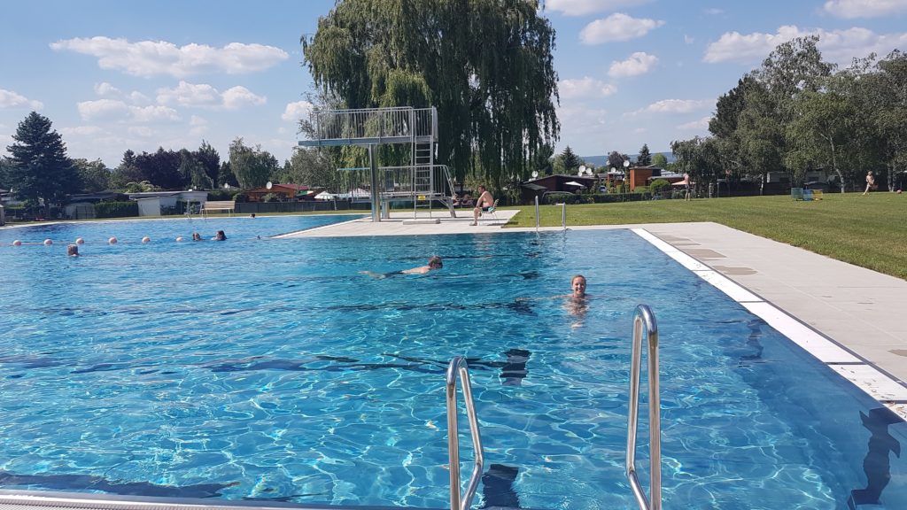 Als CP Besucher hat man freien Eintritt ins nebenstehende Freibad, war zwar noch etwas frisch, aber sehr nett.