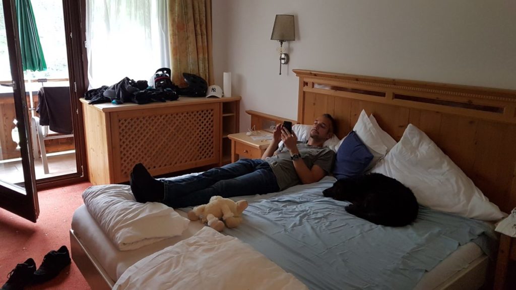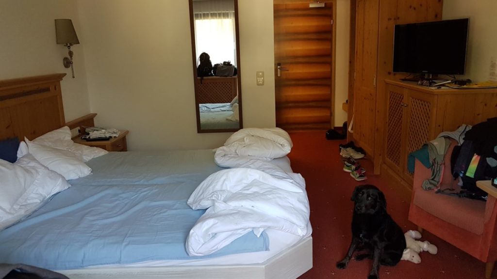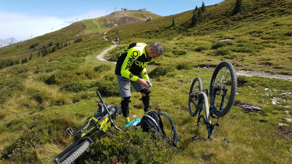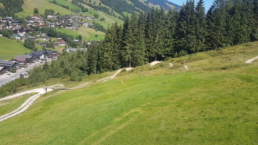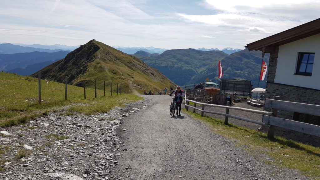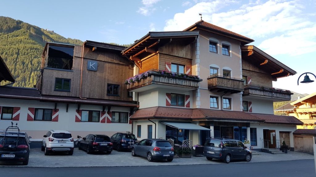 Mangels Campingplatz haben wir uns für 5 Tage im Hotel „DAS KOHLMAIS“ in Saalbach, direkt gegenüber der Kohlmaisbahn einquartiert. Für ca. 450,- EURO/Person haben wir ein Doppelzimmer mit toller HP und JOKER-CARD. Der Skikeller steht im Sommer als Bikeraum zur Verfügung.