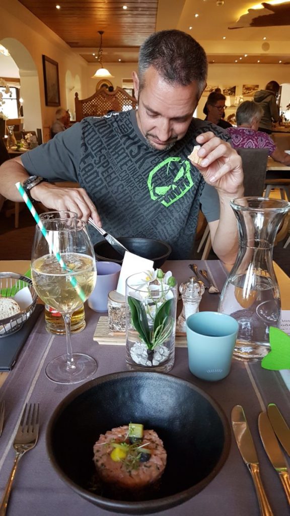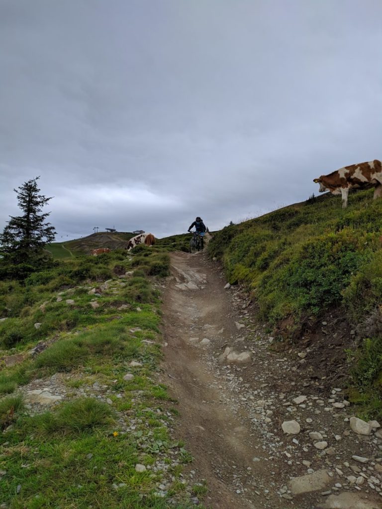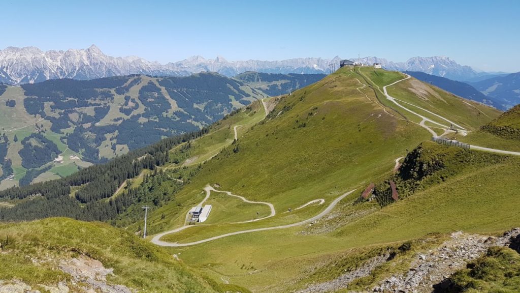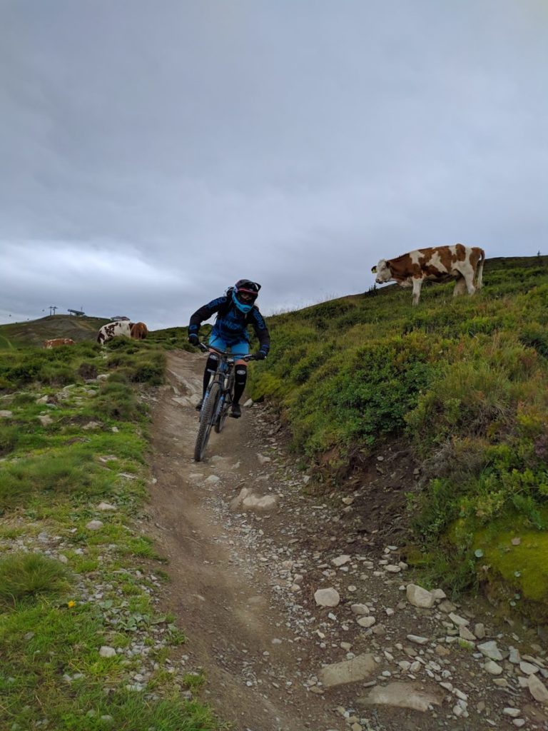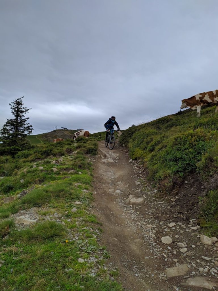 Mangels Campingplatz haben wir uns für 5 Tage im Hotel „DAS KOHLMAIS“ in Saalbach, direkt gegenüber der Kohlmaisbahn einquartiert. Für ca. 450,- EURO/Person haben wir ein Doppelzimmer mit toller HP und JOKER-CARD. Der Skikeller steht im Sommer als Bikeraum zur Verfügung.