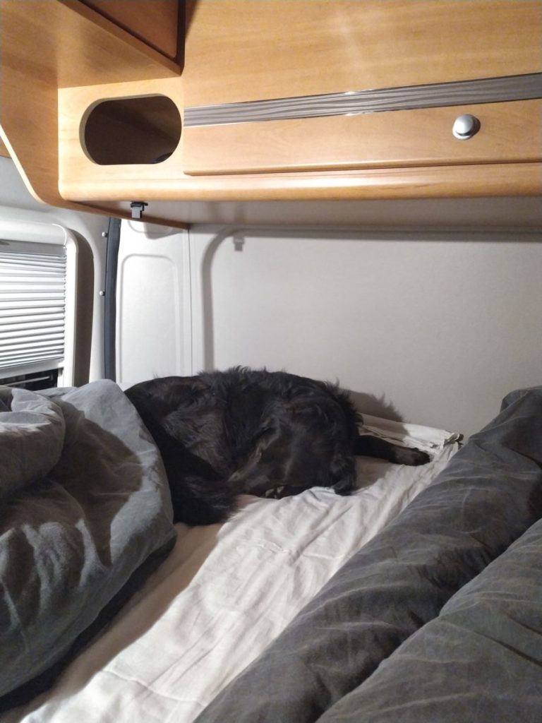 Es kommt doch wieder die Sonne raus, also chillen wir am CP, essen unsere mitgebrachten Torten aus der Thermenkonditorei Fürstenfeld während Ilvy mit der Wühlmaus beschäftigt ist.