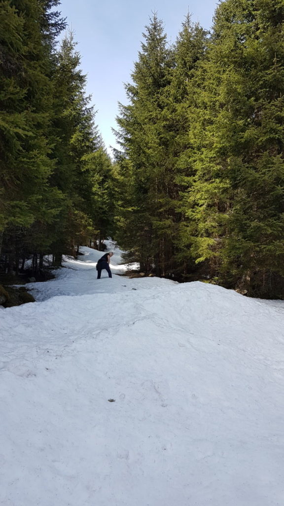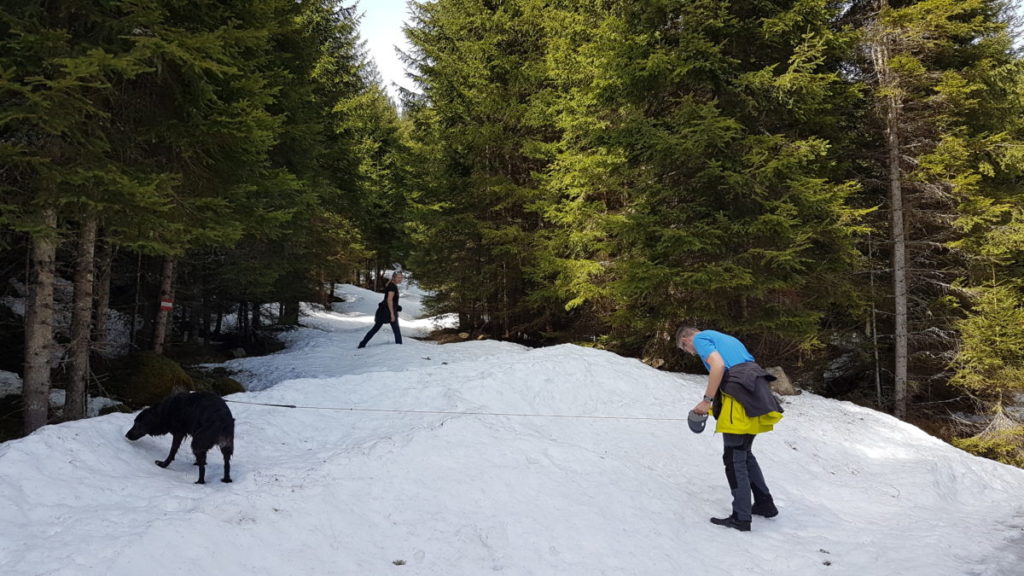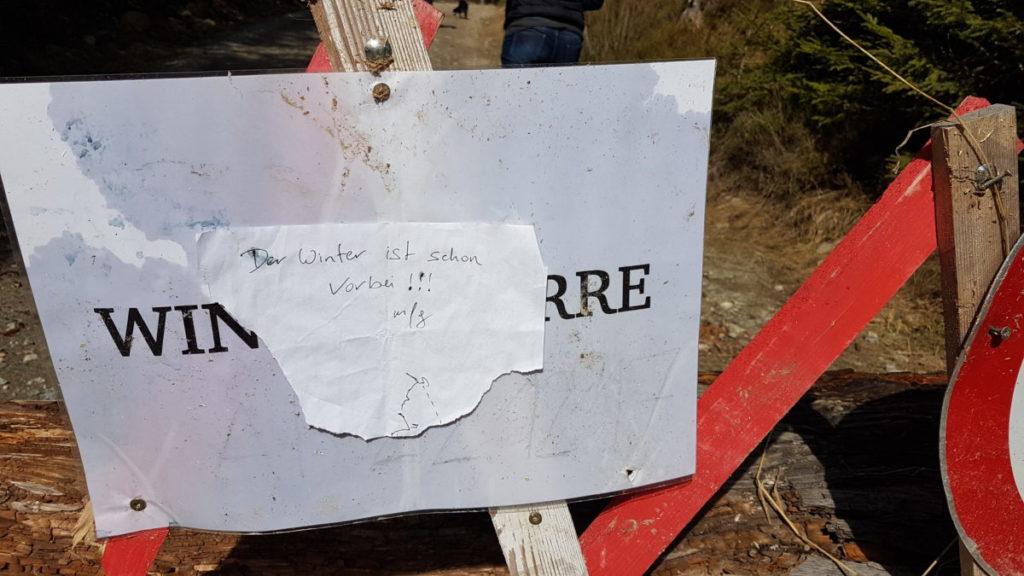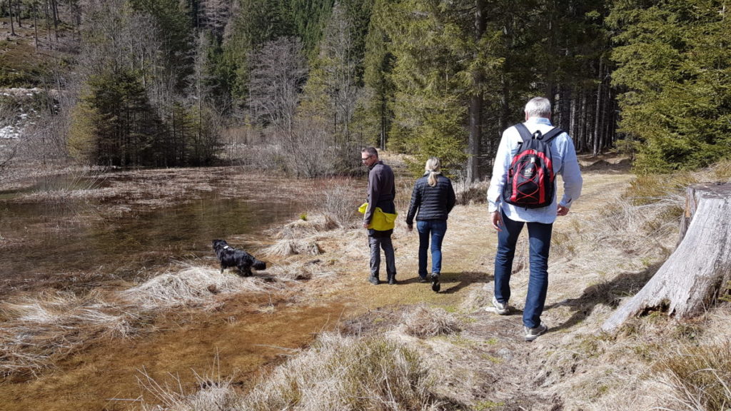 Um 10 Uhr treffen wir uns mit den Nitschis und fahren hinauf zum Ingeringsee. Der obere Parkplatz am See ist noch gesperrt, also geht’s zu Fuß hinauf. Geplant war die große Runde um den See, jedoch liegt am oberen Wanderweg noch so viel Schnee, daß ein Weiterkommen nicht möglich ist, also müssen wir die Runde abkürzen.