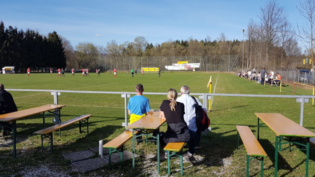 Danach gibt’s eine Erfrischung beim Hotel , anschließend um 17 Uhr ist Anpfiff beim Fußballbspiel LOBMINGTAL vs. St. GEORGEN. Nach einem 0:0 in der ersten Halbzeit verlassen wir den Fußballplatz um nach Großlobming essen zu gehen. Am Heimweg zum CP werden wir von einer Katze verfolgt, die sich nicht abwimmeln läßt.